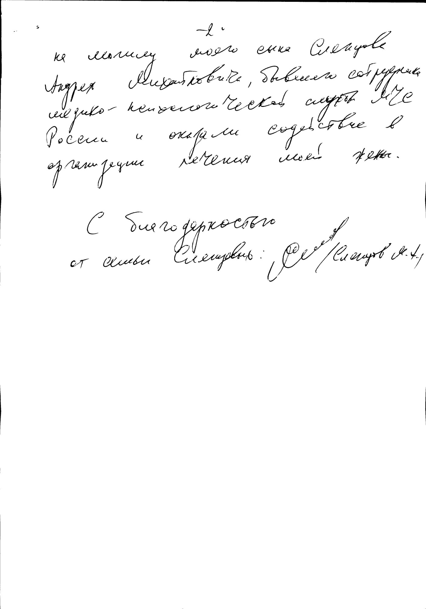 Благодарность Владимиру Пучкову за небезразличие в просьбам родственников бывших сотрудников ведомства