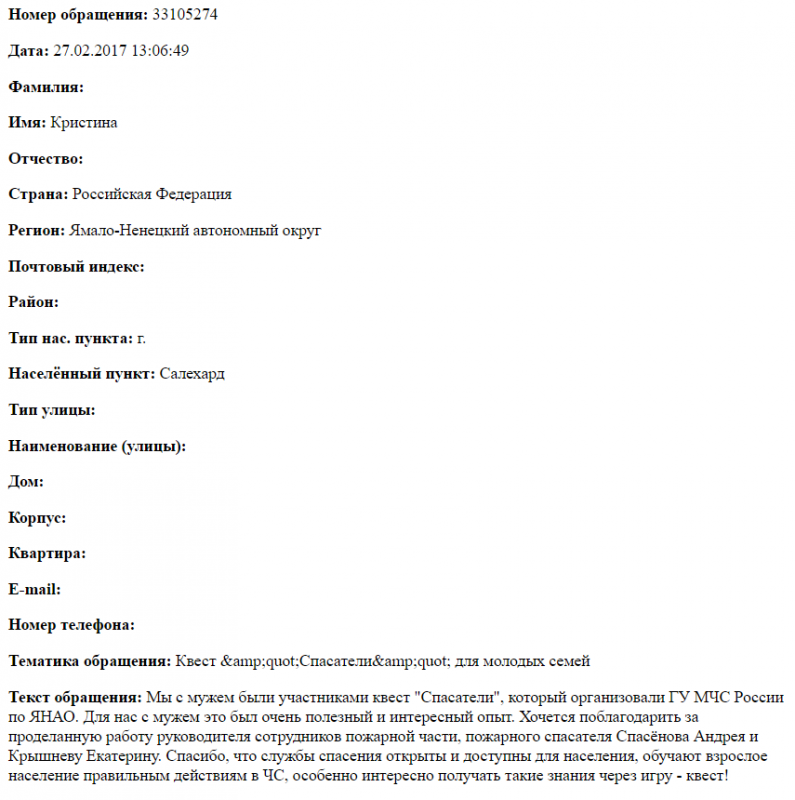 Благодарность сотрудников пожарной части за проделанную работу в проведении квеста "Спасатель"