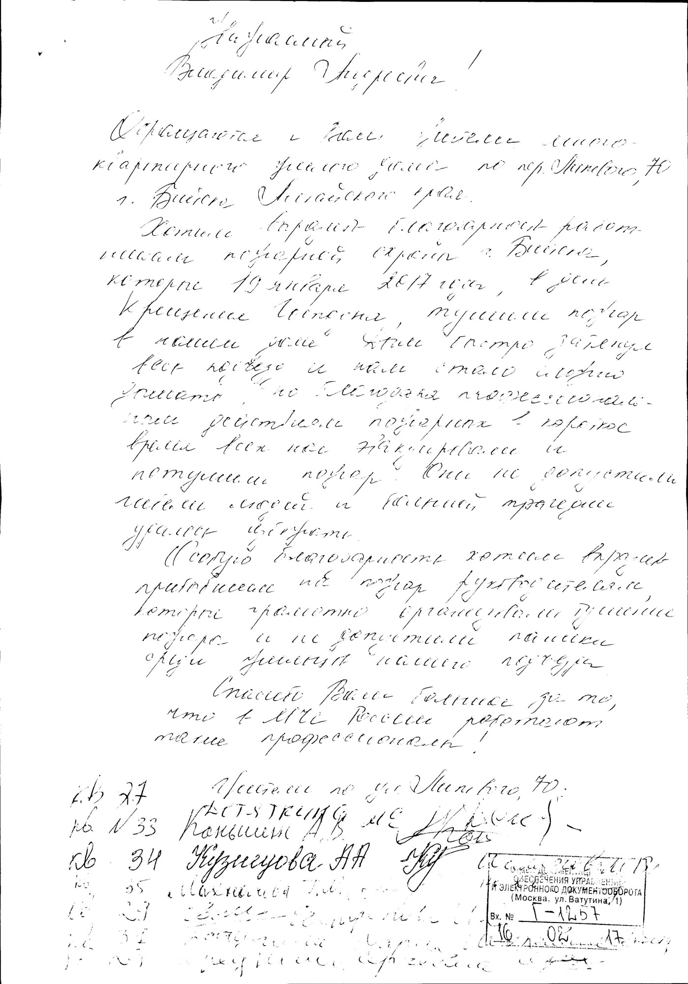 Благодарность от жильцов многоквартирного дома сотрудникам пожарной охраны г. Бийск
