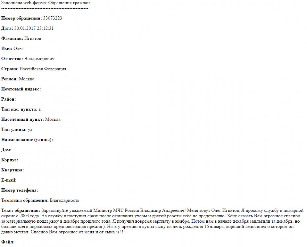 Здравствуйте, уважаемый Министр МЧС России Владимир Андреевич! Я прохожу службу в пожарной охране с 2003 года. На службу я поступил сразу после окончания учебы и другой работы себе не представляю.