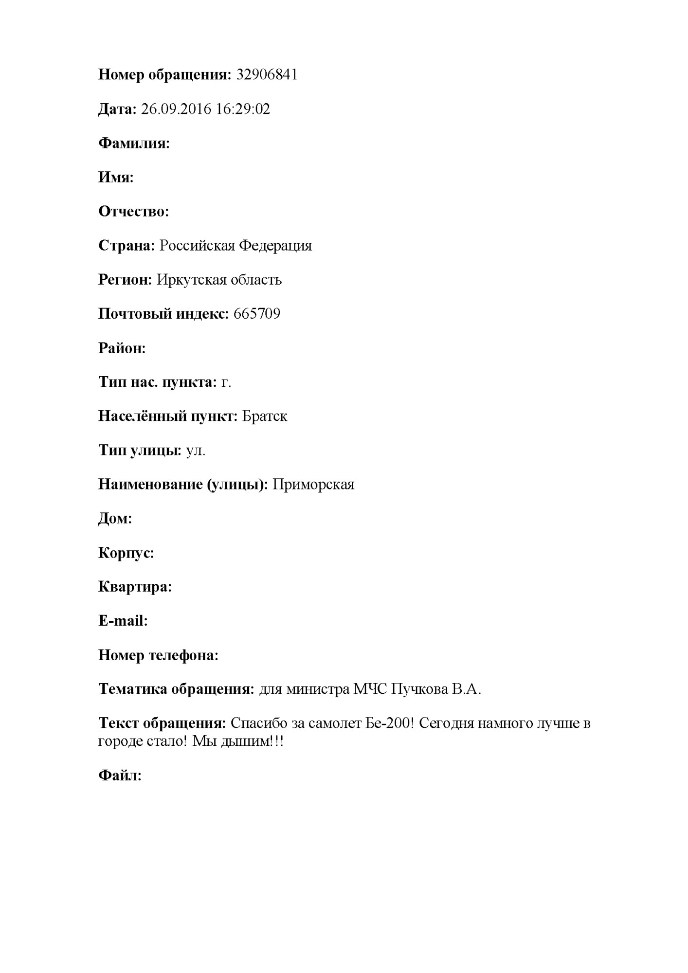 Спасибо за самолет Бе-200! Сегодня намного лучше в городе (Братске) стало! Мы дышим!!!